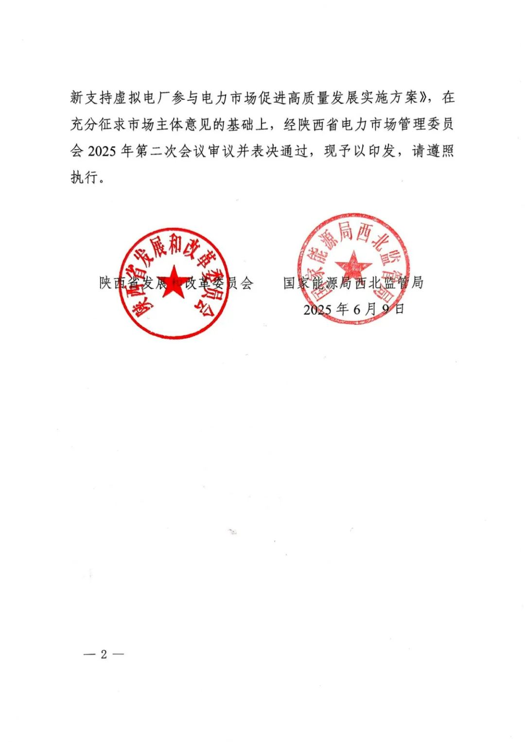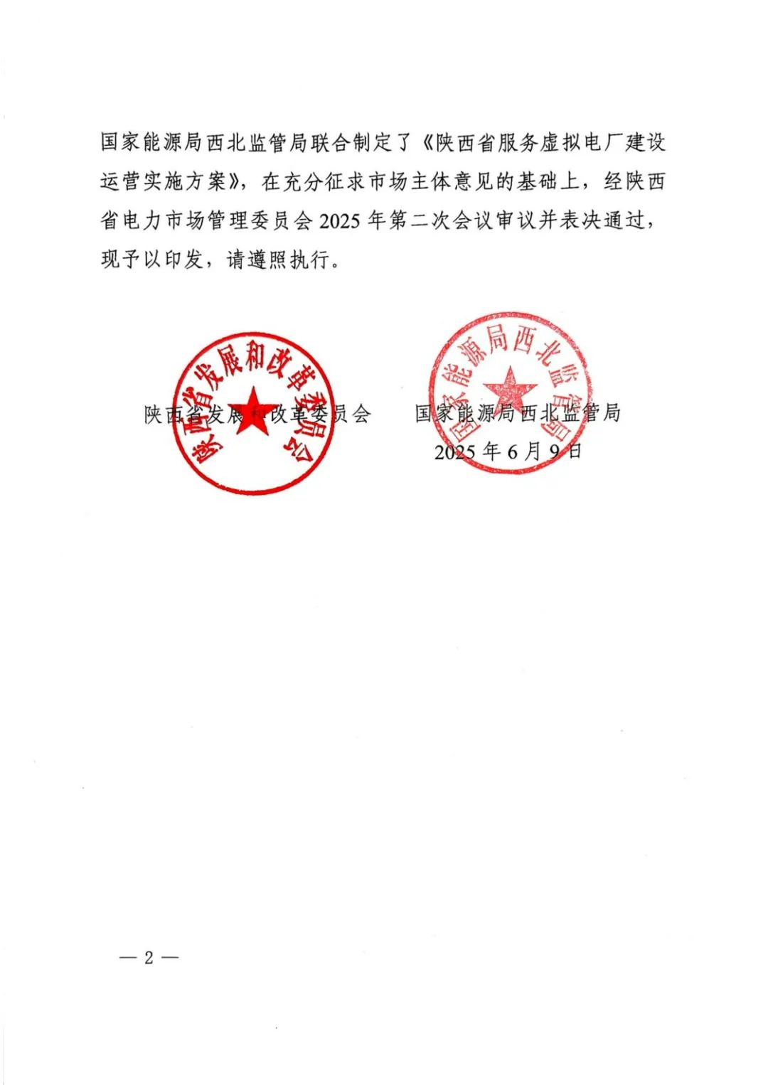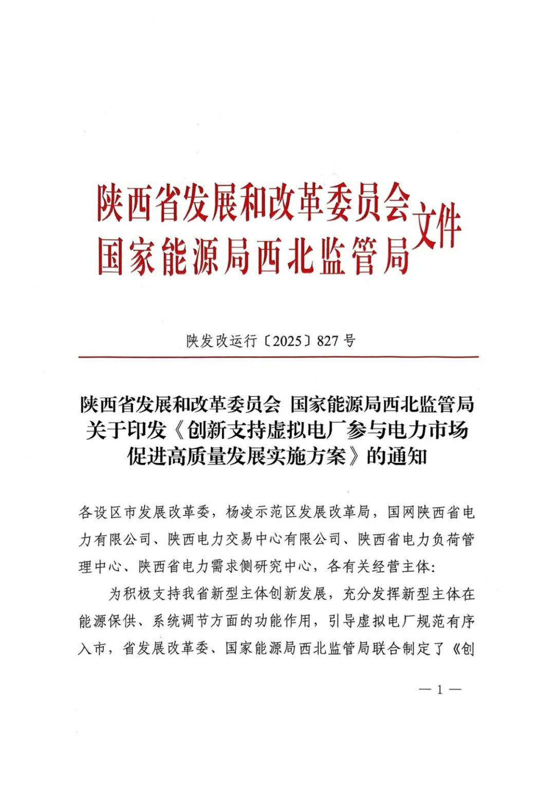 陕西:虚拟电厂高质量发展和建设运营实施方案,虚拟电厂调节容量不低于0.5兆瓦,持续调节时间不小于1h。来源:陕西省发改委 6月16日,陕西省发展和改革委员会国家能源局西北监管局印发《创新支持虚拟电厂参与电力市场促进高质量发展实施方案》、《陕西省服务虚拟电厂建设运营实施方案》。 标志着西北地区规模最大的虚拟电厂市场机制正式落地。在新能源装机占比突破45%的陕西电网,这一制度创新正悄然改写区域能源治理逻辑。 虚拟电厂是基于电力系统架构,运用现代信息通信、系统集成控制等技术,聚合分布式电源、可调节负荷、储能等各类分散资源,作为新型经营主体协同参与电力系统优化和电力市场交易的电力运行组织模式。政策组合拳明确,陕西省内的虚拟电厂运营商将需求侧可调节负荷、分布式电源、独立储能等各类分散资源聚合后形成虚拟电厂,作为整体参与电力市场。 虚拟电厂聚合资源应为具有电网企业独立营销户号、在电力交易平台注册的经营主体。现阶段主要聚合分布式光伏、分散式风电、独立储能等未直接调管的分布式资源和具备负荷调节能力的市场化用户。由电力调度机构直接调度管理的发电及储能资源不纳入聚合范围。虚拟电厂不得跨省级电网控制区聚合资源。 其中《创新支持虚拟电厂参与电力市场促进高质量发展实施方案》规定:负荷类资源为执行我省工商业用电价格且具备调节能力的电力用户(含其内部配置储能),包括但不限于配置分布式电源、用户侧储能的电力用户、电动汽车充电设施、蓄热蓄冷、常规工业可调节负荷、商业楼宇用户等。电力用户经电网企业认定接入节点处于配网明显阻塞区域的,不参与虚拟电厂聚合和调节。独立储能类资源为符合《陕西省新型储能参与电力市场交易实施方案》(陕发改运行〔2024〕377号)有关要求、接入电压等级在10千伏(不含)以下的分布式储能。 在建设内容上,虚拟电厂运营商应建设技术支持系统并具备信息处理、运行监控、业务管理、计量监管、聚合调节等功能,满足网络安全防护等相关技术要求。虚拟电厂聚合资源总调节容量不低于5MW,且同一市场出清节点(一般为330千伏及以上电压等级母线)调节容量不低于0.5MW,持续调节时间不小于1h。 在运行管理上,虚拟电厂聚合的分布式光伏、储能等各类调节资源应满足相应资源种类的涉网技术性能标准及并网管理要求。当电网发生紧急供需失衡或设备重过载等运行安全问题时,虚拟电厂聚合资源应按照调度管理规程、超计划用电限电及事故限电方案、有序用电方案、应急预案等,承担电网平衡及安全义务,严格执行调度指令,虚拟电厂运营商不得干扰调度指令传达和执行。 在结算管理上,虚拟电厂运营商和聚合电力用户电费结算以省电力公司计量装置数据为结算依据,虚拟电厂运营商参与需求响应业务,按照陕西省电力需求侧管理有关规定开展费用结算;参与电力中长期、电力现货市场和电力辅助服务市场,按照陕西电力市场交易规则开展费用结算,同时公平承担市场运营费用、不平衡资金等,按照上、下网电量分别计算分摊费用。虚拟电厂运营商不得以同一调节行为同时获取多重市场收益。 两个文件原文如下: ![]() ![]() 创新支持虚拟电厂参与电力市场 促进高质量发展实施方案 为贯彻落实国家发展改革委、国家能源局《关于支持电力领域新型经营主体创新发展的指导意见》(国能发法改〔2024〕93号)、《关于加快推进虚拟电厂发展的指导意见》(发改能源〔2025〕357号)等文件精神,积极培育虚拟电厂等新型经营主体合规有序入市,充分发挥需求侧资源灵活调节作用,制定本方案。 一、总体思路 按照“统一规范、市场培育、技术创新、多元发展”的原则,积极推动我省虚拟电厂合规有序入市,以市场化路径实现常态化、规模化、可持续发展,以关键技术和核心装备创新为引领,驱动虚拟电厂高质量发展,积极探索利益共享、责任共担的资源互动业务场景和商业模式,充分发挥新型经营主体在能源保供、系统调节方面的功能作用,为新型经营主体发展提供良好市场环境,促推更好形成能源领域新质生产力。 二、虚拟电厂市场定位 陕西省内的虚拟电厂运营商将需求侧可调节负荷、分布式电源、独立储能等各类分散资源聚合后形成虚拟电厂,作为整体参与电力市场。虚拟电厂运营商是虚拟电厂建设、运营和组织的主体,是虚拟电厂市场权利义务、聚合资源调度响应管理以及涉网安全管理等的主要责任主体。 虚拟电厂与其他经营主体享有平等的市场地位,按照市场规则依法、合规、公平参与电能量交易、绿电绿证交易、辅助服务市场及容量市场等各类市场化交易,实现协同调度并承担偏差结算和不平衡资金分摊等相关费用。 三、虚拟电厂聚合资源分类 虚拟电厂现阶段主要聚合分布式光伏、分散式风电、独立储能等调度未直接调管的分布式资源和具备负荷调节能力的市场化用户。聚合资源应为具有电网企业独立户号、在电力交易平台注册的市场主体。由调度机构直接调度管理的发电及储能资源不纳入聚合范围。 (一)聚合资源类型 将虚拟电厂聚合资源分为发电类资源、负荷类资源和独立储能类资源三类: 发电类资源:符合国家及我省分布式电源有关管理要求,具备独立上网关口、接入电压等级在10千伏(不含)以