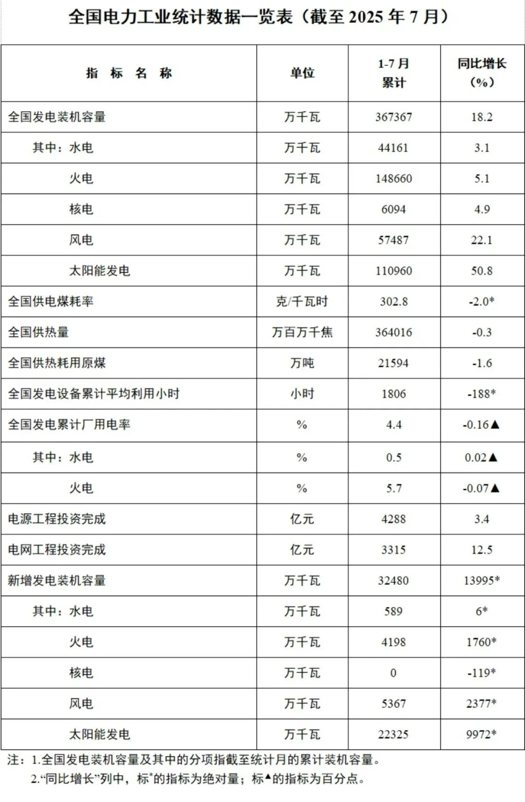 国家能源局:7月新增光伏装机11.04GW,风电2.28GW!来源:国家能源局 根据2025年6月份数据计算可得,2025年7月,全国新增光伏装机11.04GW;新增风电装机2.28GW。 文件原文如下: 8月23日,国家能源局发布1-7月份全国电力工业统计数据。 截至7月底,全国累计发电装机容量36.7亿千瓦,同比增长18.2%。其中,太阳能发电装机容量11.1亿千瓦,同比增长50.8%;风电装机容量5.7亿千瓦,同比增长22.1%。1-7月份,全国发电设备累计平均利用1806小时,比上年同期降低188小时。 ![]() 来源:国家能源局 |
